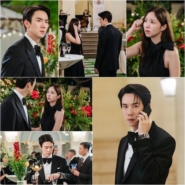 첫 방송 당일인 오늘(22일) 공개된 스틸에는 연미복과 드레스를 입고 파티에 동반 참석한 ‘쇼윈도 부부’ 사언과 희주의 모습이 담겨 있어 시선을 끈다.