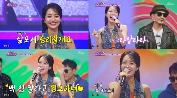 박상민의 '청바지 아가씨'를 선곡한 김소연은 곡명과 걸맞게 레트로한 무드의 데님 스타일링으로 풋풋한 에너지를 한껏 발산했다. 이후 통통 튀는 비타민 매력으로 재해석한 김소연표 '청바지 아가씨' 무대가 보는 내내 기분 좋은 웃음을 안겼다.