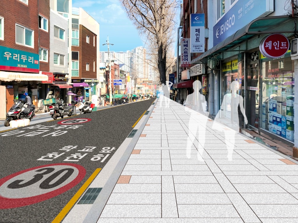 보도 폭 1.1m~1.5m → 2m~2.5m로 늘리고 ‘도로 다이어트’