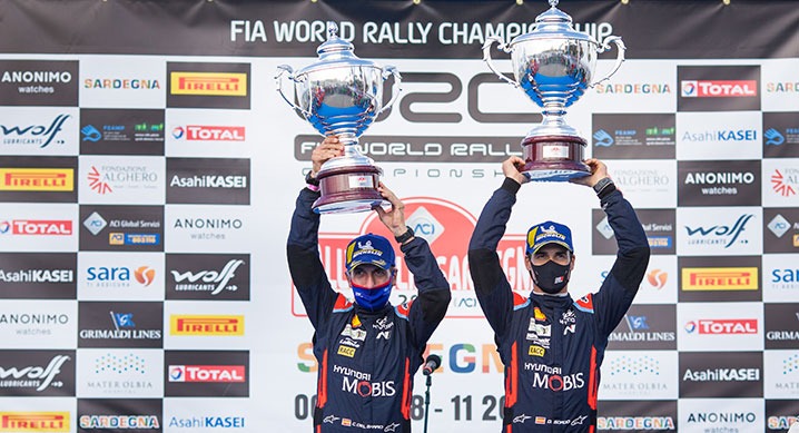 현대자동차는 9~11일 사흘간 이탈리아 사르데냐(Sardegna)에서 개최된 ‘2020 WRC’ 6차 대회에서 현대자동차 월드랠리팀 소속 다니 소르도(Dani Sordo) 선수가 우승을, 티에리 누빌(Thierry Neuville) 선수가 준우승을 차지하며 2020 WRC 제조사 부문 챔피언십 선두를 탈환했다고 12일(월) 밝혔다.