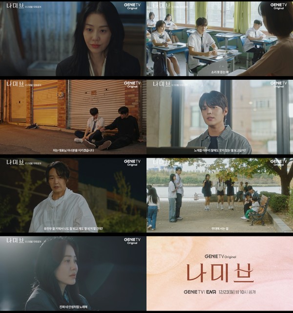 해고된 스타 제작자 강수현과 방출된 장기 연습생 유진우가 만나 각자의 목표를 위해 나아가는 이야기를 담은 지니 TV 오리지널 드라마 ‘나미브’는 오는 23일(월) 밤 10시 ENA에서 첫 방송되며, 스트리밍은 본방 직후 KT 지니 TV, 지니 TV 모바일에서 무료로 제공된다.[사진 제공: 지니 TV 오리지널 드라마 <나미브> 하이라이트 영상 캡처]