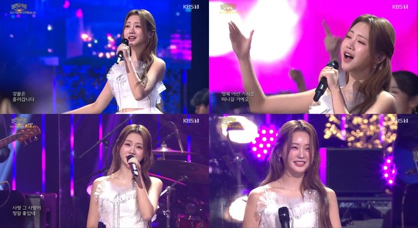 홍지윤은 22일 방송된 KBS 1TV ‘열린음악회’에 출연해 ‘제3한강교’와 ‘정말 좋았네’ 무대를 선보였다.
