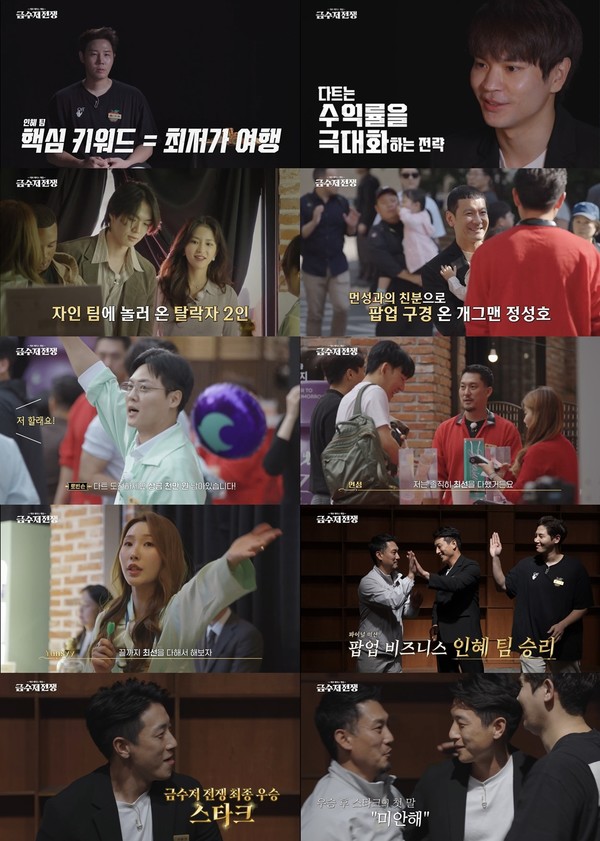 이어서 승리팀 멤버 중 최후의 우승자를 가리기 위한 팝업 기여도 평가가 진행됐다. 투자 설명회부터 팝업 비즈니스까지 성공으로 이끈 '리더' 인혜와 영업, 지인 동원, 판매에서 모두 활약했던 '육각형 인재' 스타크의 이파전으로 압축됐다. '주식브로'로 '찐우정'을 과시했던 두 사람이지만 우승 앞에 서로를 견제하며 반전을 선사했다.
