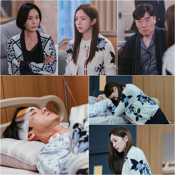 이런 가운데, 9회 본방송을 하루 앞둔 오늘(26일) 공개된 스틸에는 희주가 시부모 의용, 규진을 만난 모습이 담겼다. 가족이지만, 얼음장같이 차가운 세 사람의 분위기가 더욱 의미심장하게 다가온다.