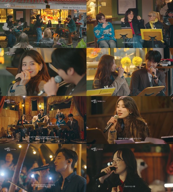 수지는 팝송 ‘21’과 발라드곡 ‘오늘 뭐 했는지 말해봐’를 부르며 영화 속 한 장면 같은 분위기를 만들었다.