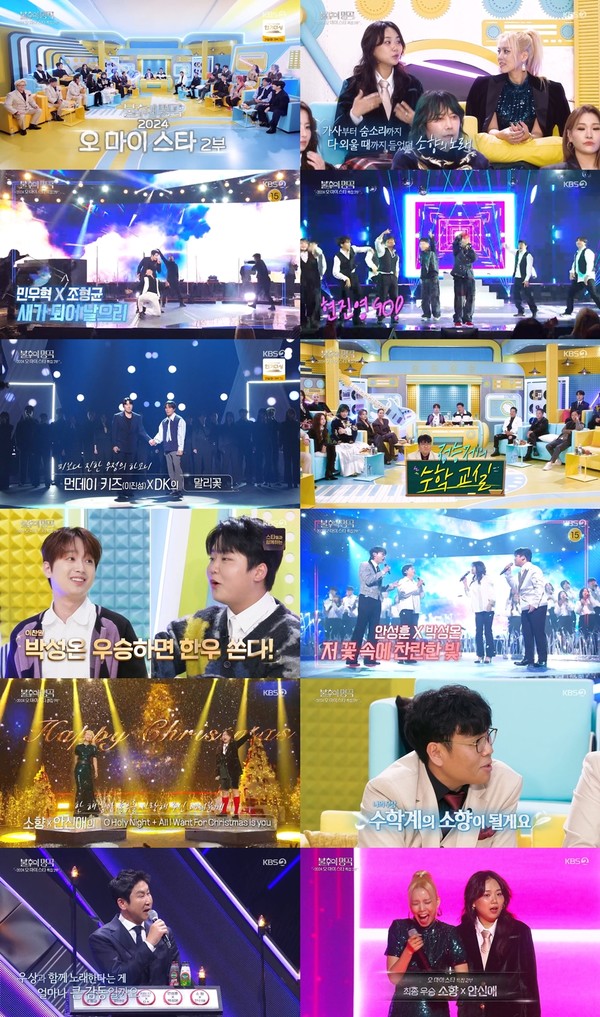지난 28일(토) 방송된 KBS2 ‘불후의 명곡’ 687회는 ‘2024 오 마이 스타’ 특집 2부가 펼쳐졌다. 민우혁 X 조형균, 현진영 X 팝핀현준, 먼데이 키즈(이진성) X DK, 안성훈 X 박성온, 소향 X 안신애가 차례로 연말 무대를 화려하게 수놓았다.