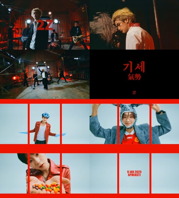 공개된 타이틀곡 ‘기세(氣勢)’ 영상에서는 위풍당당하게 서 있는 멤버들 위로 세 가지 언어로 표현된 붉은 글씨의 ‘2Z’가 겹쳐져 시선을 사로잡았다. 이어 타이틀곡 ‘기세’라는 단어와 어울리는 강렬한 비주얼의 멤버들이 기대감을 고조시켰다.