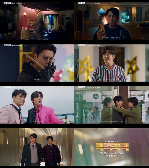 오는 2월 5일(수) 첫 방송을 앞둔 KBS 2TV 새 수목드라마 ‘킥킥킥킥’(극본 정수현, 남은경, 정해영 / 연출 구성준 / 제작 DK E&M, 이끌엔터테인먼트)는 천만배우 지진희(지진희 분)와 한때 스타피디 조영식PD(이규형 분)가 콘텐츠 제작사를 설립하고 구독자 300만을 향해 달려가는 오피스 코미디 드라마다.
