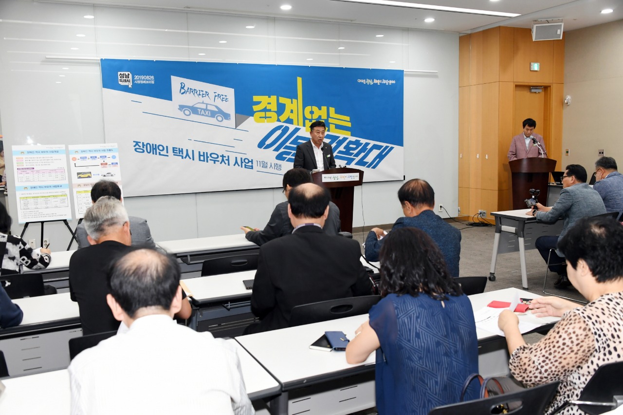 성남시(시장 은수미)는 장애인 택시바우처 사업 시행을 앞두고 정책 방향 및 추진일정에 대한 설명을 위해 8월26일 시청 율동관에서 시정브리핑을 진행했다.