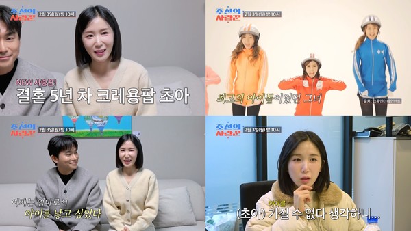 TV CHOSUN 극사실주의 다큐 예능 ‘조선의 사랑꾼’에 결혼 5년 차이자 전직 아이돌 '크레용팝' 초아가 남편과 함께 합류한다.