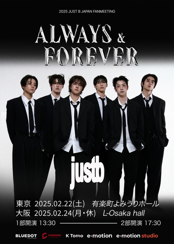 저스트비(임지민, 이건우, 배인, 시우, 전도염, 김상우)는 오는 22일 도쿄, 24일 오사카에서 2025 일본 팬미팅 ‘Always and Forever(올웨이즈 앤 포에버)’를 개최한다.