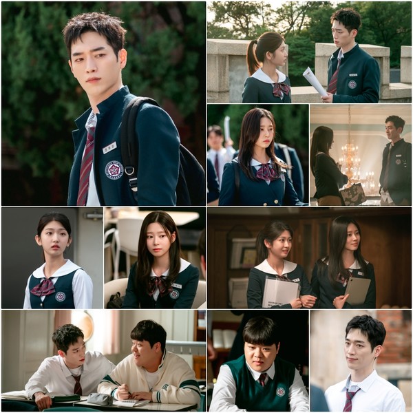 5일(오늘) 공개된 스틸에는 고등학생으로 위장 잠입하게 된 정해성(서강준 분)과 같은 학교에 다니는 병문고 학생회 학생회장 이예나(김민주 분), 해성의 정체를 유일하게 알고 있는 안유정(박세현 분), 똘똘한 해성의 조력자 이동민(신준항 분)의 다채로운 모습이 엿보인다.