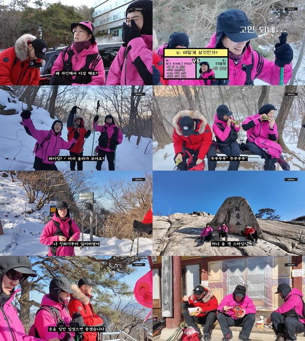 에픽하이는 본격적인 등산을 시작했다. 에픽하이는 산을 오르며 자연스럽게 밸런스 게임을 시작했고, 틈날 때마다 '오징어 게임'을 따라하는 등 시종일관 유쾌한 티키타카를 펼쳤다.