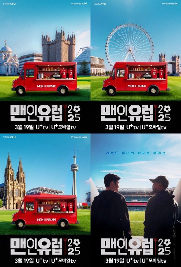 19일(수) U+tv, U+모바일tv에서 공개되는 ‘맨인유럽 2025’는 ‘후배 바보’ 박지성과 그의 절친이자 ‘맨유 레전드’ 파트리스 에브라가 후배 유럽 코리안리거들을 만나 힘을 불어넣어 주는 여정을 담은 풋볼 로드 버라이어티다.