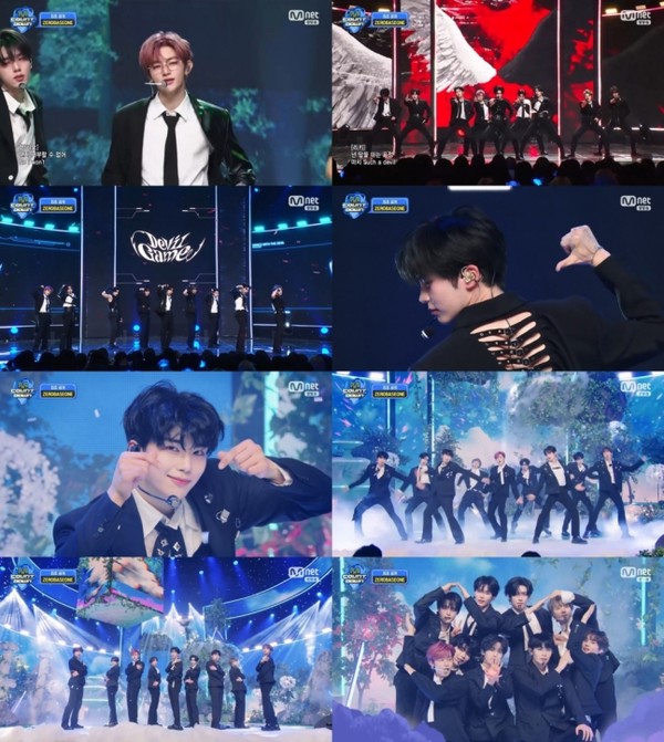 ‘데빌 게임’ 무대에서 제로베이스원은 블랙 슈트를 입고 강렬한 퍼포먼스를 펼쳤다. Mnet ‘스트릿 우먼 파이터2’ 우승팀 베베(BEBE)의 리더 바다가 안무에 참여해 ‘악마와의 숨바꼭질’이라는 테마를 극대화하며 강렬한 무대를 완성했다.