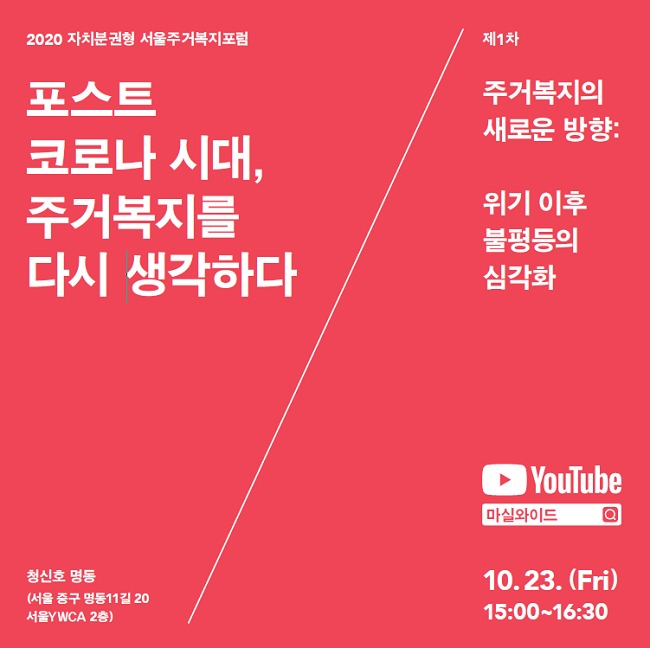 23일(금) 오후3시 서울시 유튜브 생중계, ‘2020 자치분권형 서울주거복지포럼’ 개최