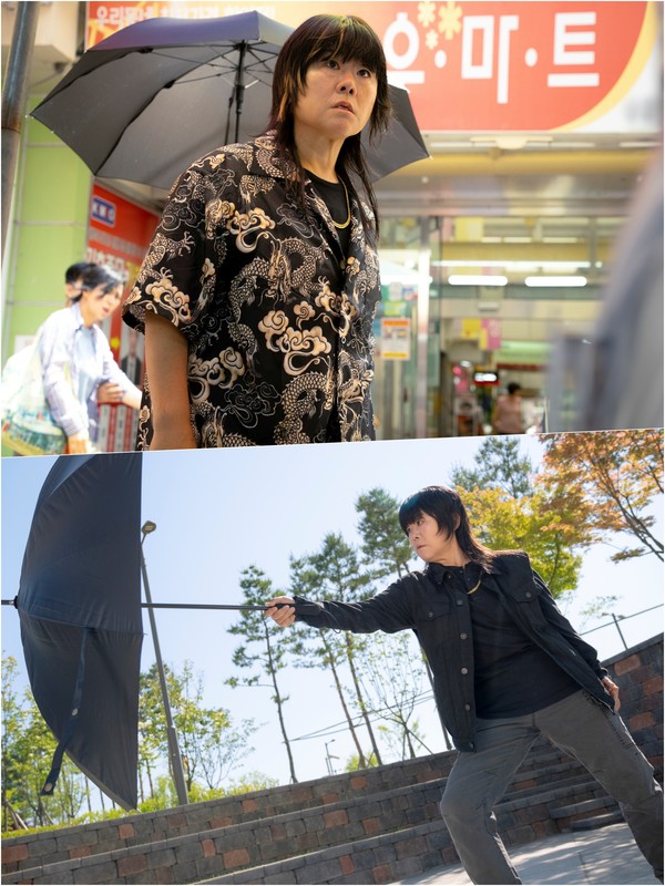 하지만 금방이라도 시장판을 엎을 듯 이글거리는 눈빛에는 살벌한 카리스마가 뿜어져 나온다. 이해숙의 필살기인 우산 방어 기술을 전수받기 위한 특급 트레이닝 현장도 포착됐다.