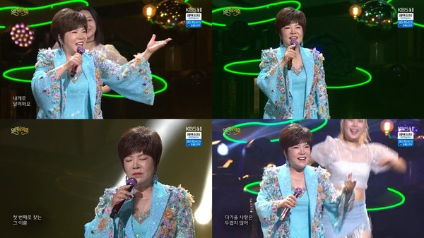 이어 김연자는 '어머니의 계절' 무대를 펼쳤다. 앞선 '10분 내로' 무대와는 또 다른 김연자의 웅장한 무대와 가슴을 저릿하게 만드는 노랫말이 관객들의 마음까지 울렸다.