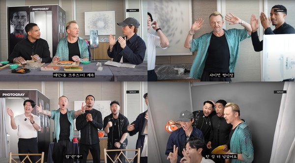에픽하이(타블로, 미쓰라, 투컷)가 지난 14일 공개한 유튜브 콘텐츠에는 '미션 임파서블: 파이널 레코닝'으로 내한 중인 할리우드 배우 사이먼 페그(Simon Pegg)와 그렉 타잔 데이비스(Greg Tarzan Davis)가 출연했다.