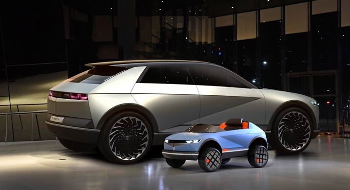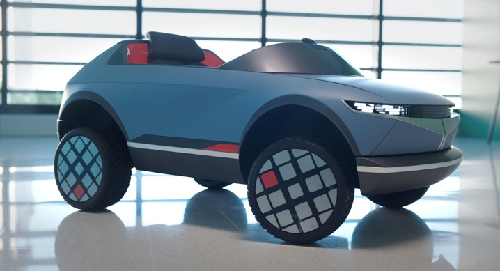 현대자동차그룹이 EV 콘셉트카 『45』 디자인을 활용해 제작한 어린이 전동차의 이미지와 제작 과정 영상을 27일(화) 최초로 공개했다.
