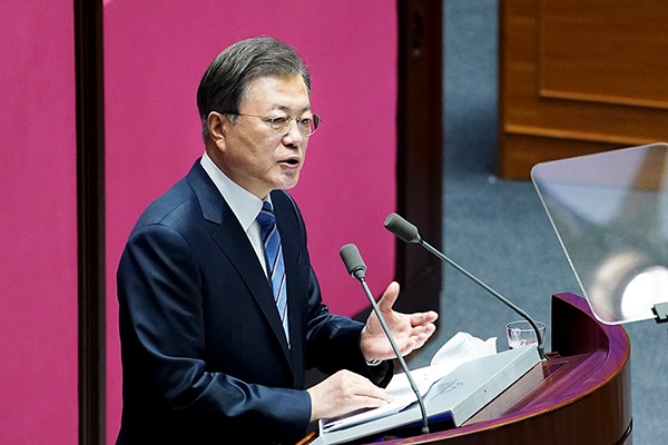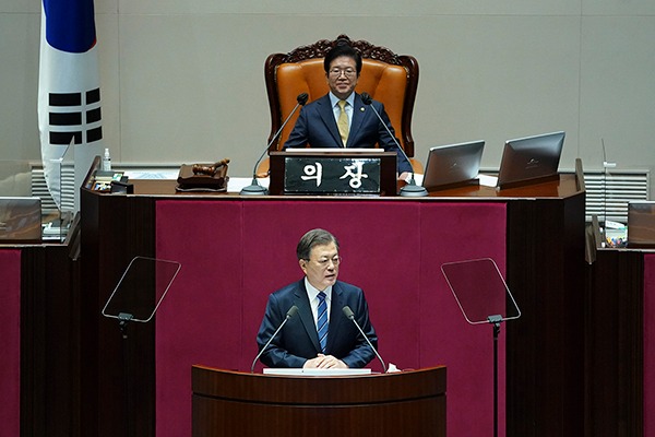 문 대통령은 이날 내년도 예산안 국회 시정연설에서 “오늘 이 자리가 방역과 경제의 동반 성공, 두 마리 토끼를 기필코 잡아낼 것을 함께 다짐하는 자리가 됐으면 한다”며 이같이 말했다.