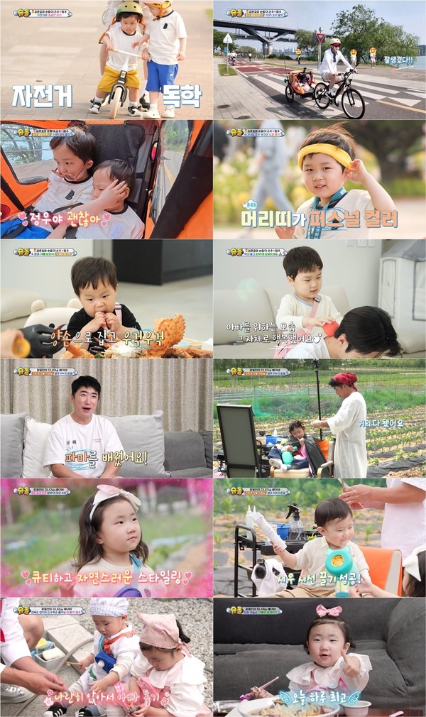 또한 정우가 새로운 경험에 도전해 눈길을 끌었다. 24개월 인생 처음으로 자전거에 도전한 정우는 자전거까지 독학으로 마스터하며 차원이 다른 국대 DNA를 입증했다.