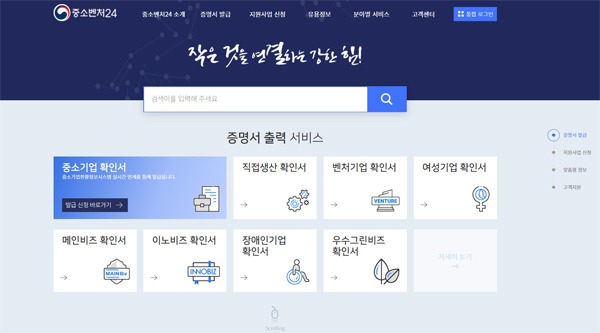 중기부는 지난 5월부터 신청 가능한 증명서 및 지원사업의 종류를 확대하고 중기부 관련 사이트의 통합을 위한 ‘중소벤처 24’의 2단계 개발사업을 진행해 2021년 2월 확대할 예정이다.