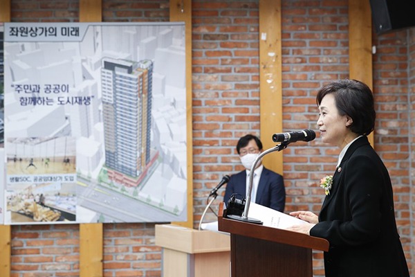 김현미 국토부 장관은 “좌원상가아파트는 도시재생사업을 통해 시민의 안전과 생업을 보장하는 동시에 지역을 되살리는 상생의 랜드마크로 거듭날 것”이라며 “앞으로 좌원상가와 같은 위험건축물 재생사업이 빠르게 확산될 수 있도록 지자체와 지역사회에서도 곧 있을 특별공모에 적극 참여해달라”고 당부했다.