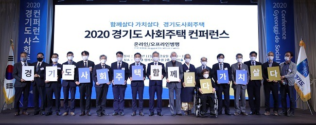 경기도는 사회주택에 대한 국내외 사례를 공유하고, 사회주택의 필요성과 중요성을 널리 알리기 위해 6일 노보텔 앰버서더 수원에서 ‘2020년 경기도 사회주택 컨퍼런스’를 개최했다. 이 자리에는 이재명 지사를 비롯해 진용복 경기도의회 부의장, 이헌욱 경기주택도시공사 사장, 사회주택ㆍ사회적경제ㆍ사회적금융 관계자 등 50여명이 참석했다.