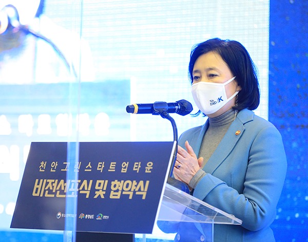 박영선 중기부 장관은 “그린 스타트업 타운은 지역 경제 활성화에 대한 그간의 고민을 담은 결과물이며 이를 현실화하고 성공으로 이끌기 위해서는 지자체의 역할이 가장 중요하다”며 “앞으로 충남, 천안과 협력해 그린 스타트업 타운이 지역균형 뉴딜의 대표 사례가 되도록 하는 동시에 천안에서 유니콘 기업이 탄생하는 데 중기부의 지원을 아끼지 않겠다”고 밝혔다.