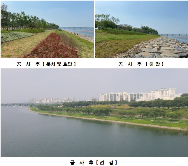 호안 둔치엔 사계절 푸르른 소나무, 대왕참나무, 사철나무, 부들레야 등 다양한 나무를 심었다. 피크닉장도 새롭게 마련해 시민들에게 휴식공간을 제공했다.