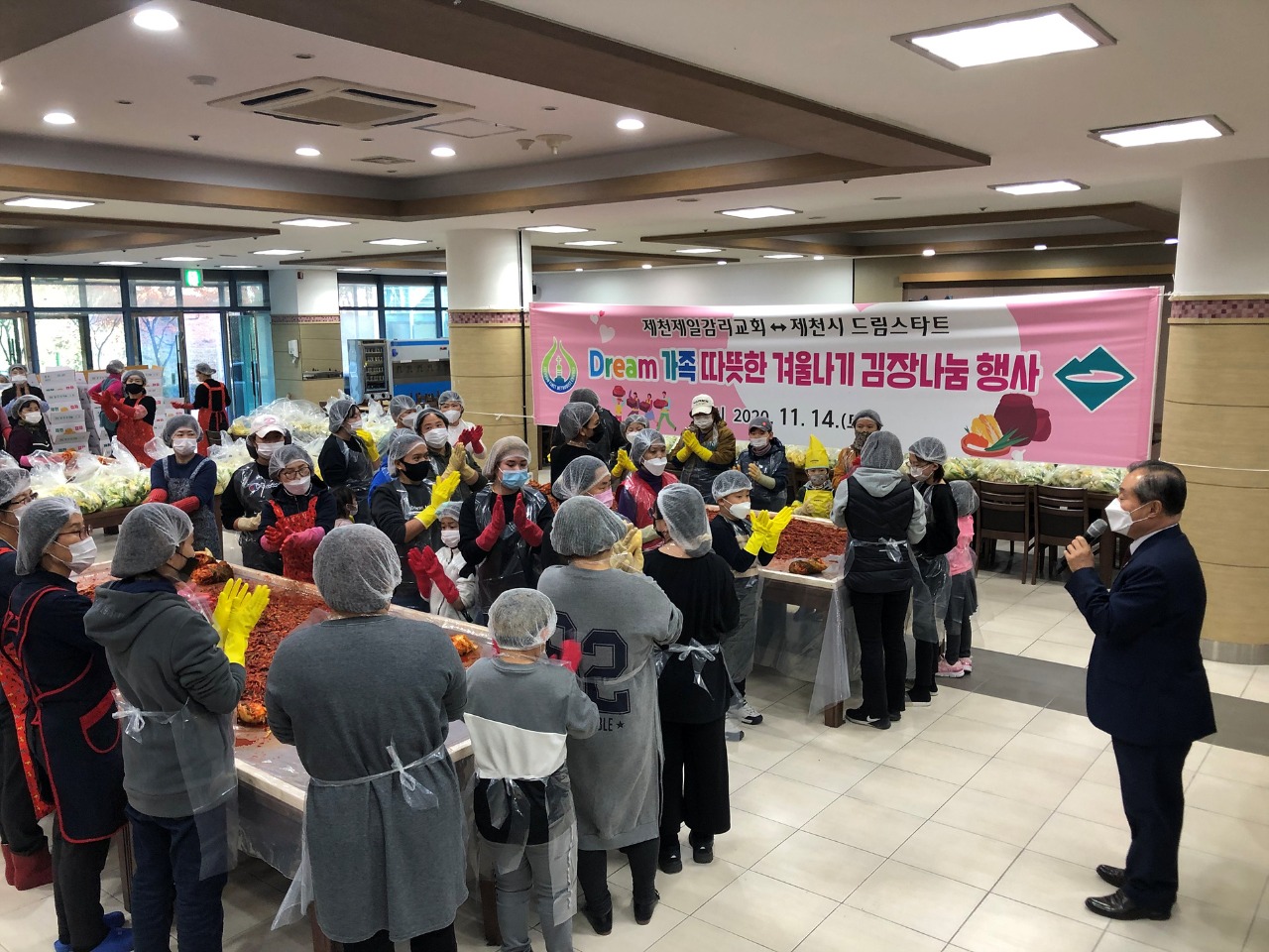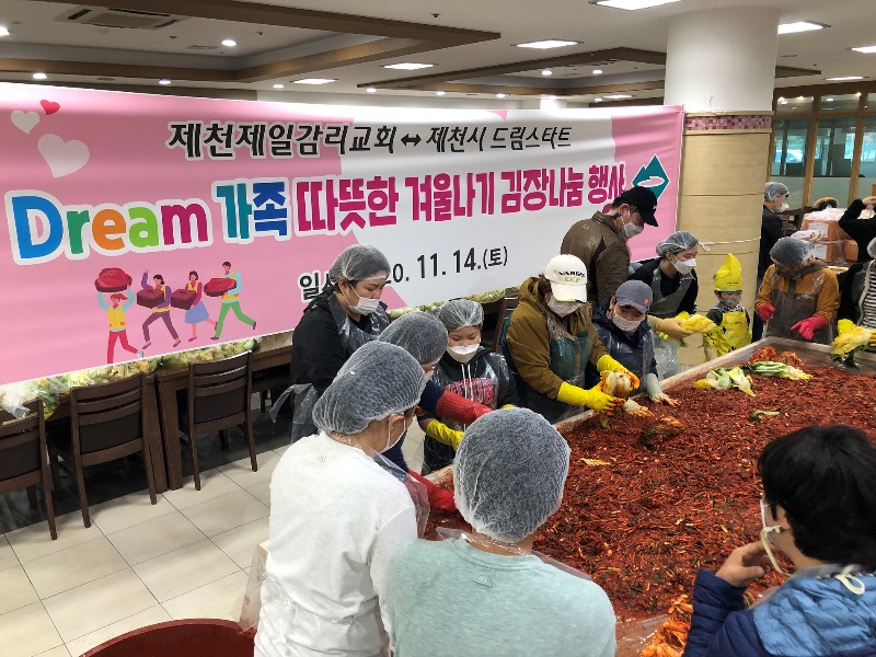 (제천=Jd News) 이용희 기자 = 제천시 드림스타트는 지난 14일 제천제일감리교회(담임목사 안정균)에서 드림스타트 20가구를 대상으로 김장나눔행사를 실시하였다.