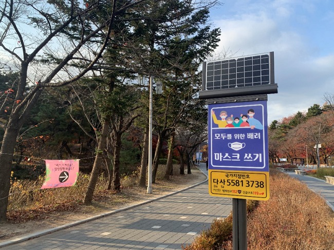 이밖에도 서울대공원에는 태양열을 이용한 종합안내판을 비롯하여 다양한 LED 조명 간판이 설치되어 있으며, 둘레길에 재미있는 문구의 현수막들로 코로나 생활수칙을 안내하고 있다.