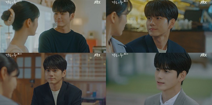 이후 우연의 부모님을 만나 훈훈한 분위기를 이어가던 수는 돌연 우연으로부터 같이 떠나지 않겠다는 충격적인 소식을 듣게 됐다. 드라마에 캘리그라피스트로 참여할 기회를 얻은 우연이 꿈을 위해 수와 함께하는 여행을 포기한 것. 우연을 두고 떠나게 된 수의 마음은 한없이 무겁고 착잡했지만 떠나기 직전까지 우연을 껴안고 “사랑해 경우연”이라고 말하는 수의 모습은 시청자들을 감동케 했다.