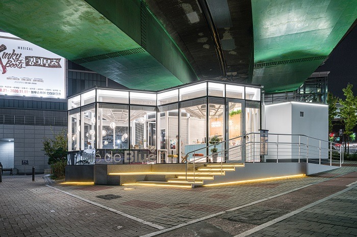 카페는 4m 높이 철골 구조에 모든 면을 통유리로 마감해 개방감이 넘치도록 했다. 카페 운영은 인터파크 씨어터(블루스퀘어)가 한다. 운영시간은 매일 오전 9시~밤 9시까지다.