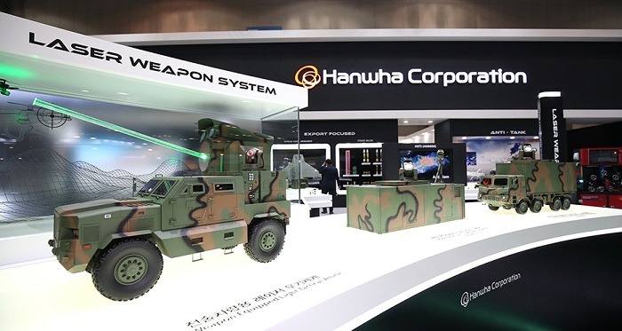 ㈜한화(대표이사 금춘수·옥경석)는 미래 전장의 '게임 체인저'로 꼽히는 레이저 무기체계와 항법장치를 주력 제품으로 선보인다.