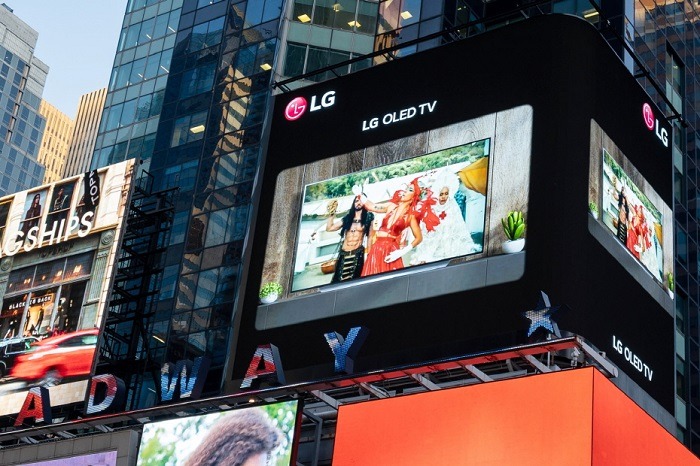 LG전자는 미국 뉴욕 타임스스퀘어(Times Square) 전광판에서 레이디 가가가 최근 발표한 신곡 '911'의 뮤직비디오를 상영하고 있다.