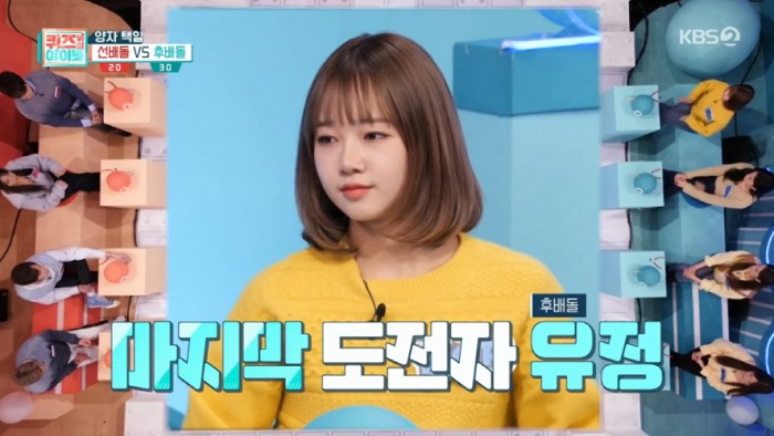 28일 방송된 KBS2 ‘퀴즈 위의 아이돌’(이하 ‘퀴즈돌’)에서는 ‘선배돌’ 앤디, 유빈, 닉쿤, 강남에 맞서 우승을 위해 뜨거운 대결을 펼치는 ‘후배돌’ 최유정과 김도연의 퀴즈 정복기가 펼쳐졌다.