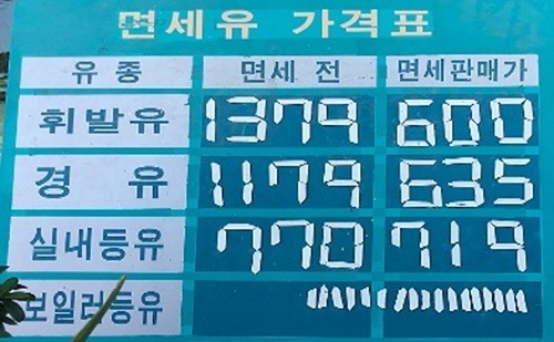 경기도가 올해 1월 1일부터 11월 3일까지 한국석유공사 오피넷(일일 유류 가격 공시사이트)이 제공한 16개 시도의 평균 면세유 판매가격을 살펴본 결과 경기도의 실제 판매 면세유가는 휘발유 1ℓ당 715.86원, 경유 1ℓ당 746.68원으로 일반유가에서 세금을 제외한 가격인 휘발유 521.76원, 경유 563.48원보다 휘발유는 194.1원(37.2%), 경유는 183.2(32.5%)원 더 높았다.
