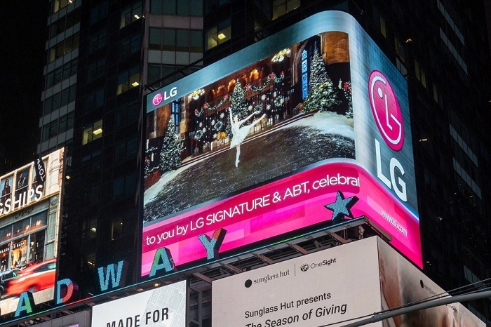 LG전자가 크리스마스를 앞두고 현지시간 4일부터 美 뉴욕 맨해튼 타임스스퀘어에 있는 LG 전광판에서 세계적인 발레단인 아메리칸발레시어터(American Ballet Theater, 이하 ABT) 와 함께 제작한 '호두까기 인형' 하이라이트 영상을 내보내고 있다.