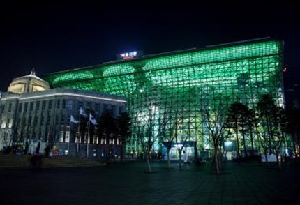 12일(토) 오후 6시 시청 본관 녹색 조명 점등.. C40 회원 도시 동시 참여