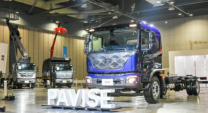 현대자동차는 경제성, 실용성은 물론 넓은 적재공간, 첨단 안전 사양 등을 충족시킨 준대형 신형 트럭 파비스를 최초로 공개하며, 소형에서 대형을 아우르는 트럭 풀라인업을 선보였다.