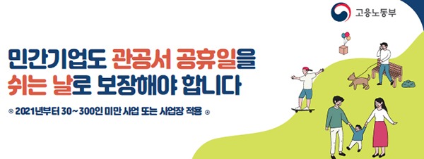 2018년 3월 근로기준법 개정에 따라 관공서 공휴일 민간적용은 올해 300인 이상 기업과 공공기관을 시작으로 내년부터 30~299인 기업에 시행된다. 2022년 1월부터는 5~29인 기업에도 단계적으로 시행될 예정이다.