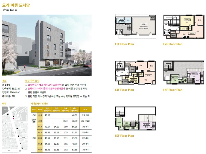 7개 테마의 공동체주택(도서당)은 총 38호의 주택과 공동육아공간, 코워킹스페이스, 공동세탁실 같은 공동체 공간으로 구성된다. 현재 입주자 모집이 진행 중이며(상시모집), 다양한 분야의 문화예술인과 전문가 중심으로 입주자를 선정해 내년 1월 중순부터 입주를 본격 시작할 계획이다.